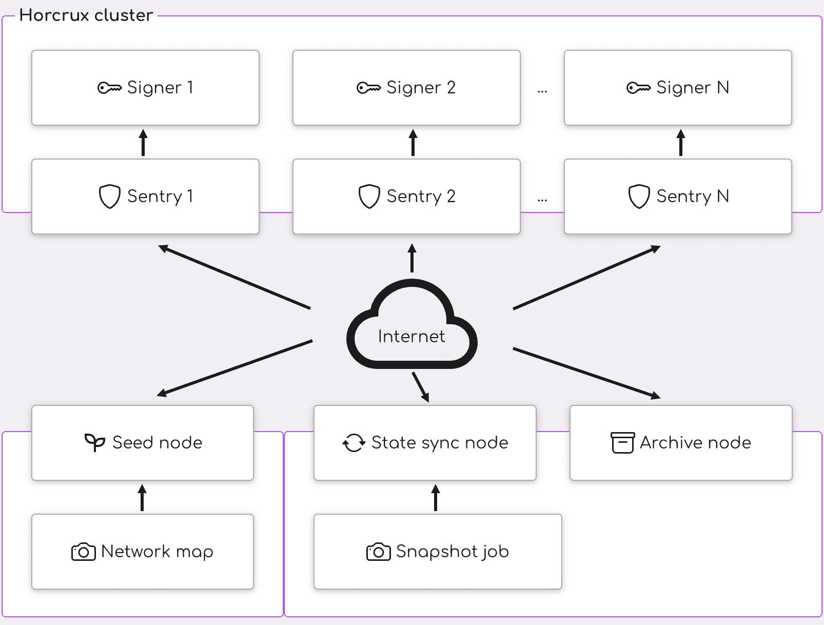 - We can scale the validator horizontally. The sentries and signers can be in different datacenters, even on different continents. If one node goes down, the others will still be able to sign the chain. We can lose entire datacenters with zero downtime.